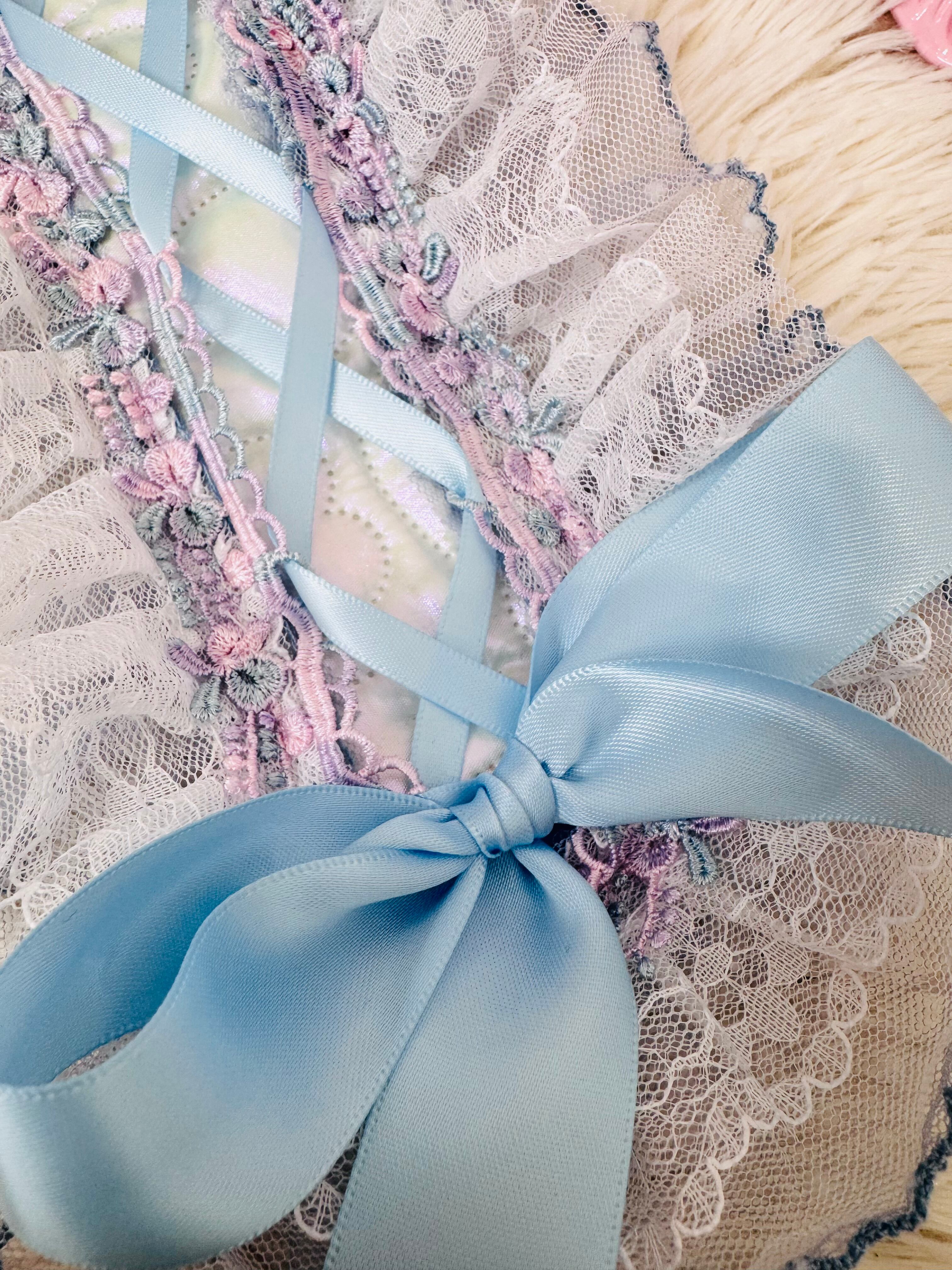 土台部分はオーロラカラーのキルティング生地で、ハートのホログラムとなっております。